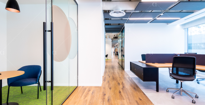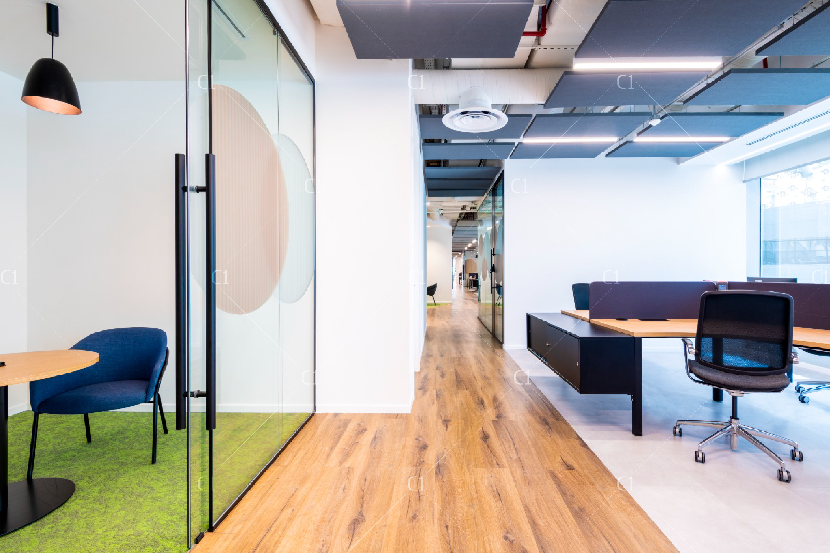 To meet the demands of a high-end, future-forward business incubator, the project utilized top-tier international workplace systems. Specifications included advanced glazing partitions, modular ceiling systems, acoustic wall and ceiling treatments, and a curated mix of soft and hard flooring finishes suited to both collaborative zones and focused work areas. Every element was selected for durability, user comfort, and a contemporary professional aesthetic.