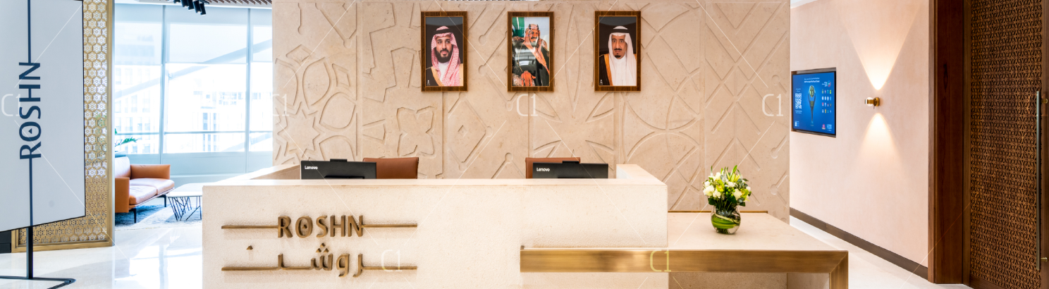 C1 delivered a comprehensive turnkey solution for the ROSHN Headquarters, covering interior design, fitout, furniture, and IT passive and active WORKS. The scope included concept development, detailed space planning, finish and material selection, lighting design, and integration of branded interior elements that reflect ROSHN’s identity and cultural values. The design drew inspiration from Saudi heritage while aligning with modern workplace standards and ROSHN’s operational vision. Execution involved full architectural and MEP works, coordination with multiple stakeholders, and the supply and installation of premium furniture and workplace technologies—ensuring a seamless, high-performance environment delivered in accordance with KAFD’s guidelines and international benchmarks.